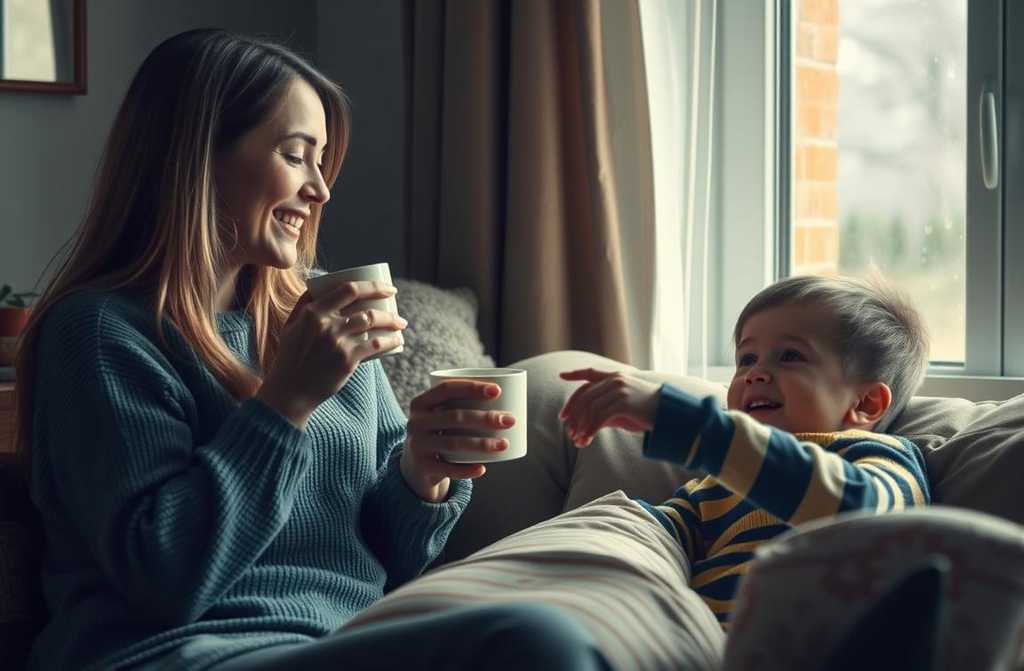 The first halfhour passed quietly. I put on DinoPark for him and slipped away to read the news on my phone. Emma kept flipping through magazines, eyes occasionally flicking to our new guest, who had settled on the carpet in front of the TV with his backpack dangling. Even after three backtoback adverts, the feeling that he was only a temporary visitor lingered.