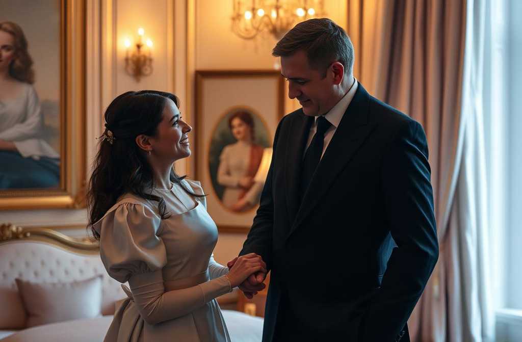 Two years later Emily was no longer the frightened chambermaid. She stood beside a strong man as an equal, not a decoration.