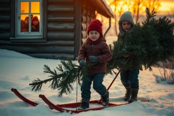The wind howled through the frozen trees as young Harry dragged a fallen pine trunk across the snow on