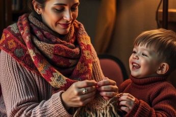 **The Scarf of Scraps** Mum was never one to sit idle. The moment she had a spare minute, shed pick up