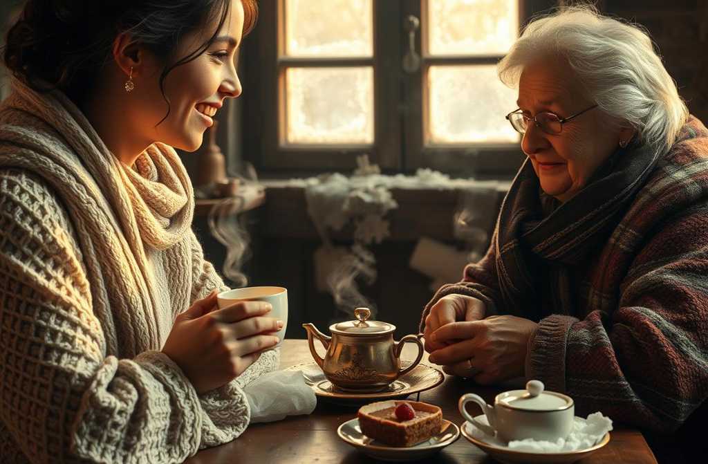 Hungry, are we? Ive boiled some noodles, feel free to join us for a hot bowl. We eat, glance at each other, while she whispers soft, round words, her gaze wary yet keen. I get the impression shes dissecting my soul. She watches me, then busies herselfcutting bread, tossing kindling onto the fire, and declaring, Ill put the kettle on. Lets have tea. She produces a tiny teapot with a lid, a pineconeshaped knob, a tiny hole, and steam rising from it. The tea is not ordinary; its berryinfused, bright red with raspberry jam, promising to chase away any chill.