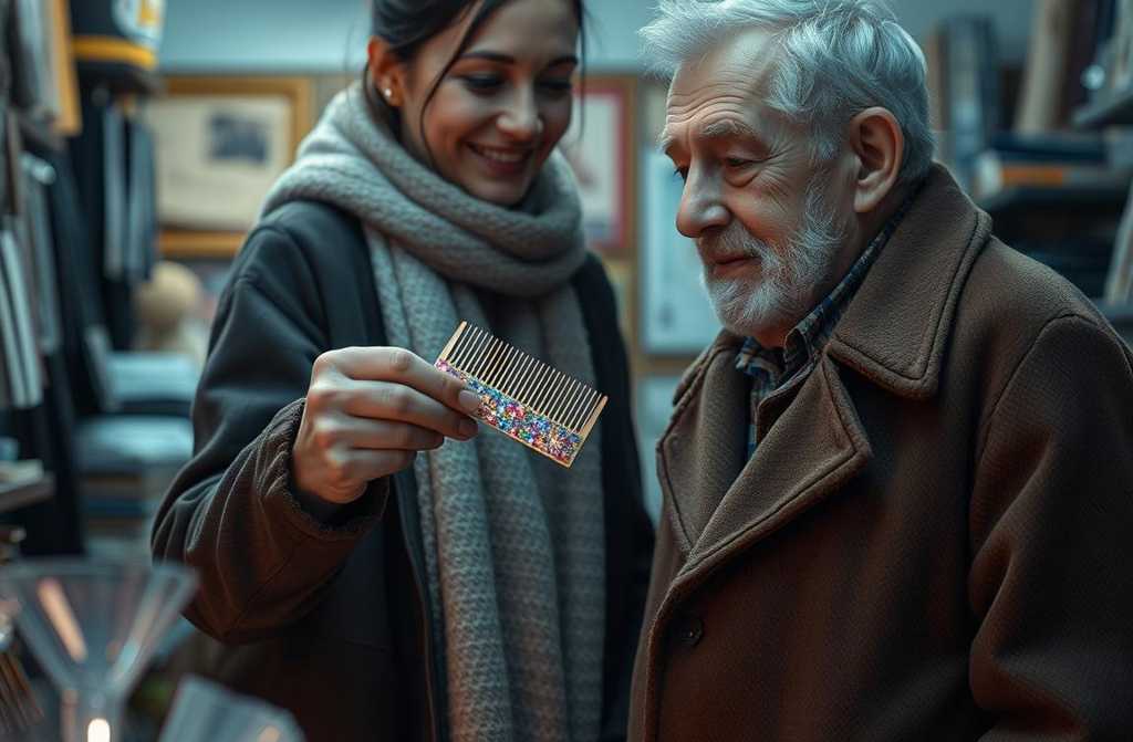 I reach for it, but my fingers stop a centimetre away. Inside, a knot of conflict tightens. Why? a stern inner voice asks. You already have a fine, ordinary, workday comb at home. This is a waste of money, a foolish thing. I sigh and pull my hand back, yet I cannot look away. The comb seems alive, hypnotic. I picture it slipping through my wild, ginger strands, and an involuntary smile spreads across my face.