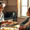 She smileslight, natural, conspiratorial. She leans toward him, whispers something, and he chuckles, a soft, intimate laugh.