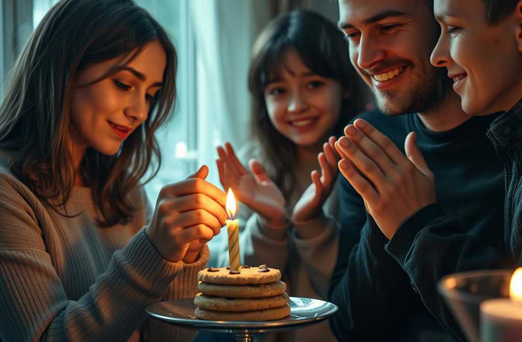 Without a word, Emily rose and walked to the fridge. There was no sponge cake or frosting, but she fetched a packet of plain biscuits and a jar of jam. Andrew couldnt help but grin; the gesture was absurd yet utterly human. On the table appeared a plate of biscuits, a mug of jam, and a small bowl of condensed milk. Tom playfully cupped his hands at his chin: