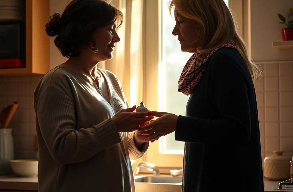 On the kitchen counter sits a small box tied with ribbon. Inside is a delicate porcelain figurine of two women holding hands. A note is tucked beside it: True friendship survives trials. I hope ours does. With love, Susan.