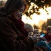 He lifts his coat, walks to the car, and drives away. Emily calls her grandmother to soothe her worries, refusing to let the truth ruin the day. She feels empty, ashamed of the lies, her face swollen with tears.