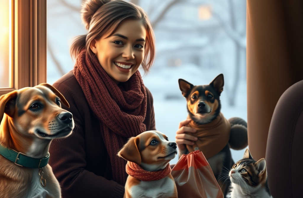 Alex heard the commotion, opened the front door, and was taken aback by the sight of a dachshund in a red overall, followed by a larger collie, then a parade of cats, all covered in snow yet marching with purpose. What on earth is this? he exclaimed.