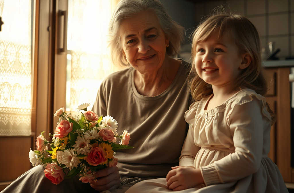 Now our children are grown, the grandchildren laugh in the garden, and I sit on the back porch watching them. Little Oliver shouts, Grandma, I love you! and his sister Lily replies, We love you too, Grandma. Even the youngest, baby Mia, babbles, Gran, I lovelove. Their grandfather, Matthew, jokes, We all love our gran, even if she keeps stealing my biscuit tin.