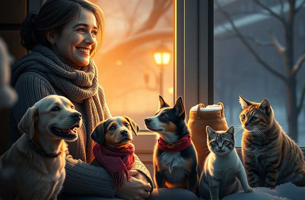 Meanwhile, Gran let Bullet and Muffin out to frolic in the freshly fallen snow. A postwoman, hurrying with a pensioners parcel, slipped open the gate, and Tabitha, Whiskers, and Milo darted out, while Prickles stayed inside. The animals formed a procession, led by Bullet, with Tabitha at the head, ensuring no one lagged. Passersby stared at the odd parade crossing the road, amused by the disciplined chaos.