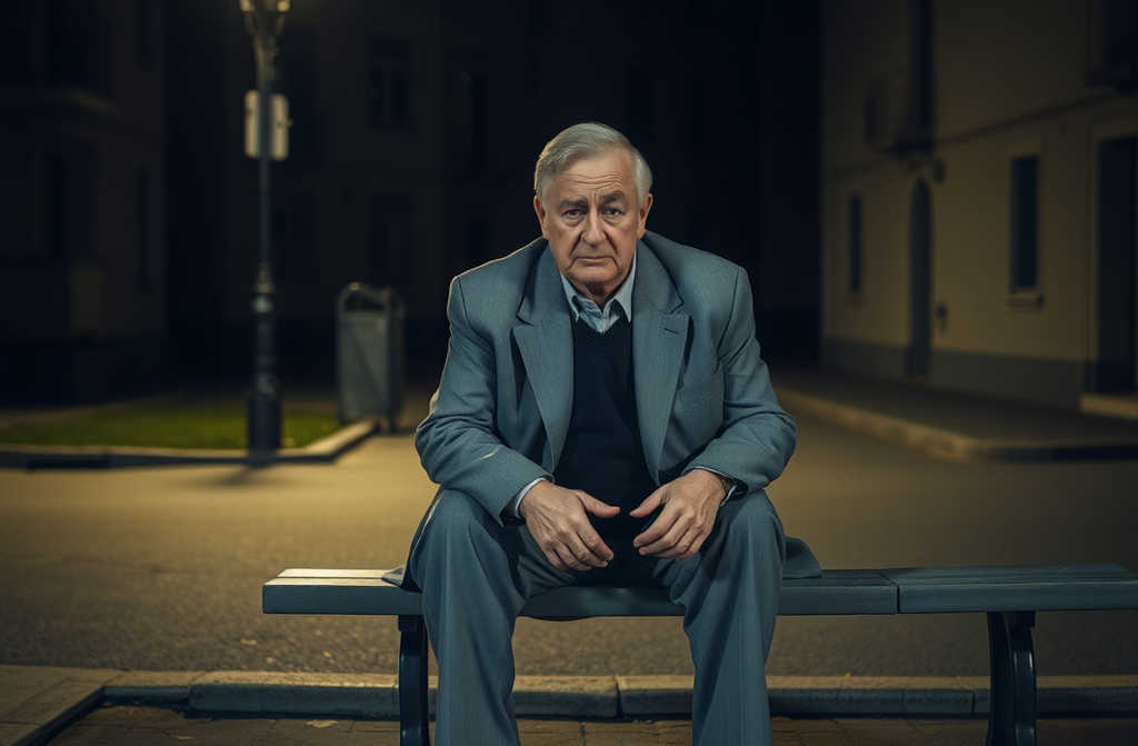 Late that night, Imogen walks home and spots Sam on a bench outside his block, under a dim streetlamp. He sits hunched, already drunk, eyes cloudy, hands resting on his knees. She doesnt recognise him.