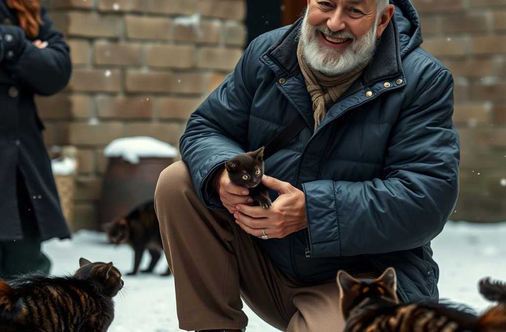 George, barely making it to work, arrived a little late. The groundskeeper had already cleared the paths, and the cats peeked from their shelter, eyes hopeful.