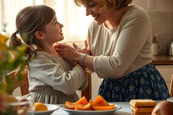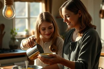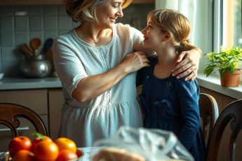 While the kettle whistles, Sarah tidies up, gathers the shards, and settles Emma into a more comfortable spot.