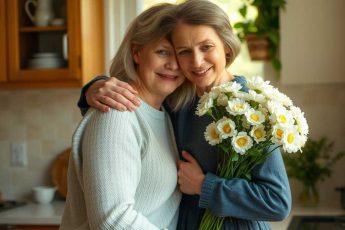 He embraced her, gratitude evident.