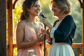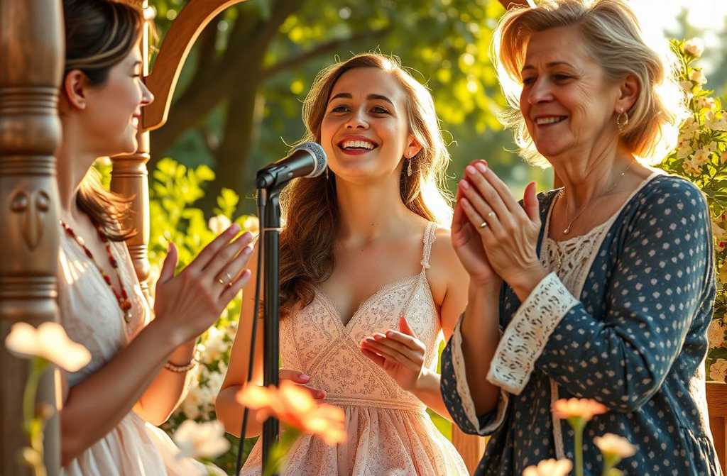 Тоня оказалась на сцене с микрофоном, сердце колотилось, ладони потели. На экране появились строки «Я тебя никогда не забуду» из советского фильма. Сначала она пела тихо, но с каждой нотой голос набирал силу. Зал замер, слушая. По окончании раздались громкие аплодисменты.
