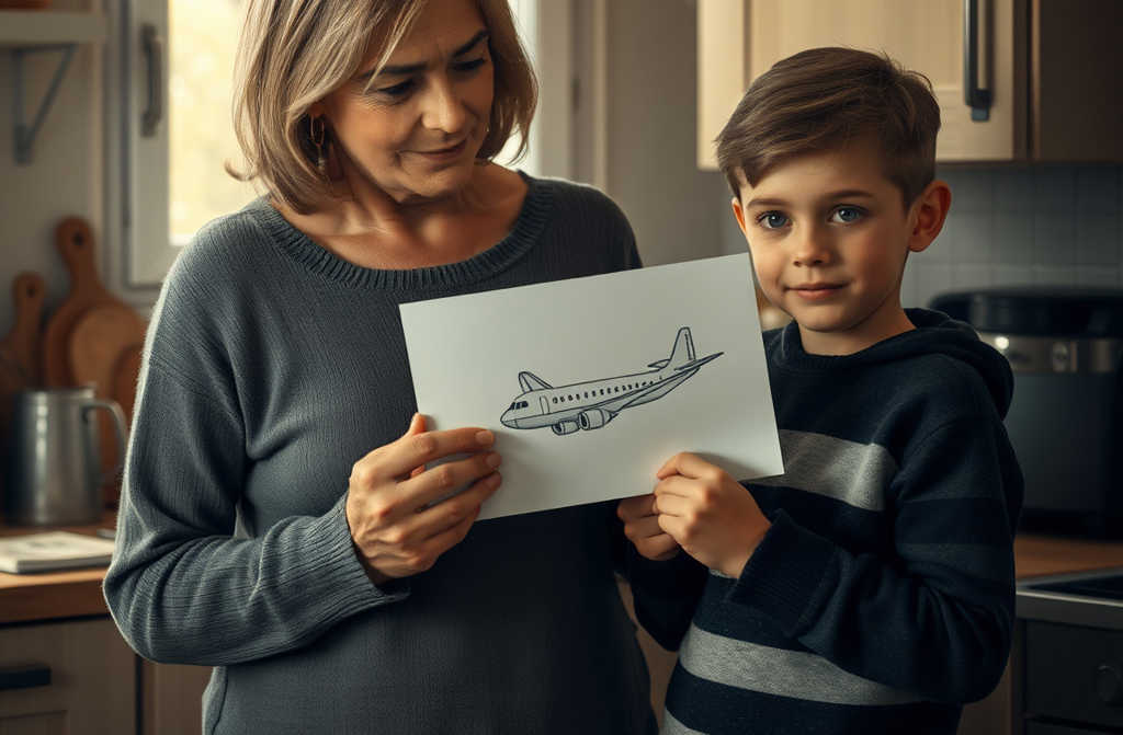 Look, thats dads plane, he told his mum, pointing at the picture. Hell fly us home on it.
