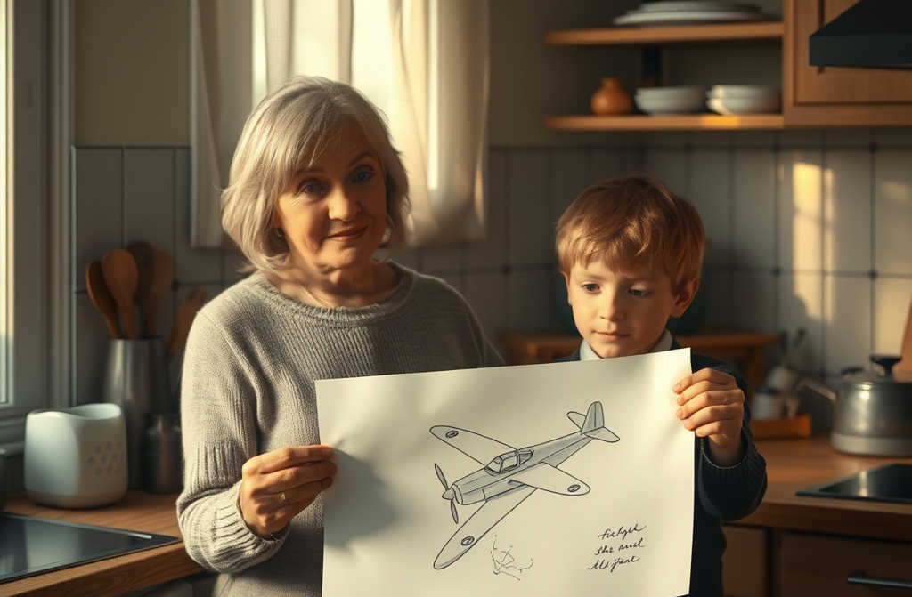 Смотри, это папин самолёт, сказал он, показывая рисунок. На нём папа к нам прилетит.