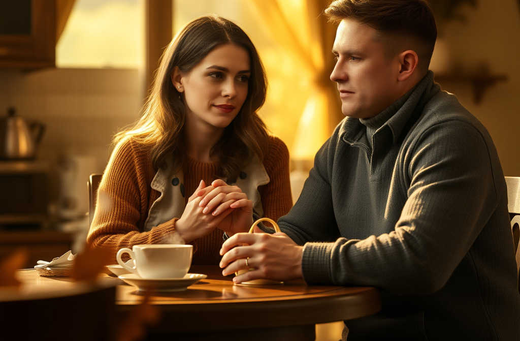 She sat down but didnt touch her tea, fidgeting with a napkin as if gathering courage.
