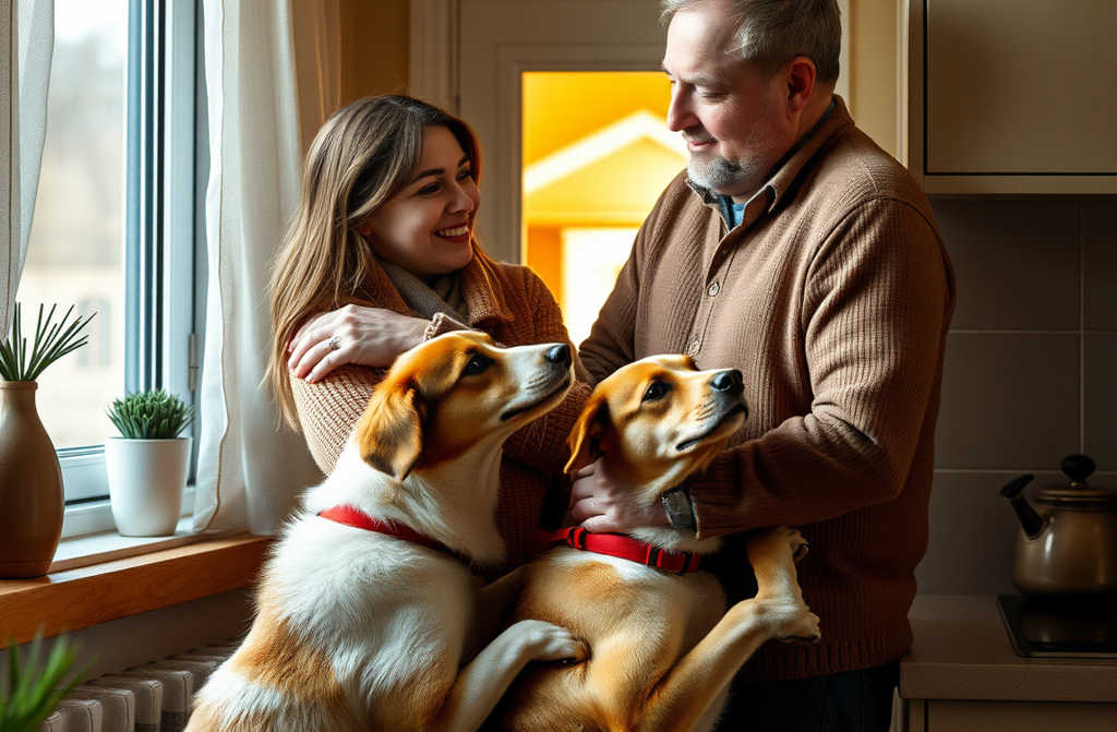 That night, back at their flat, the two new dogs trotted around, sniffing every corner, wagging their tails.