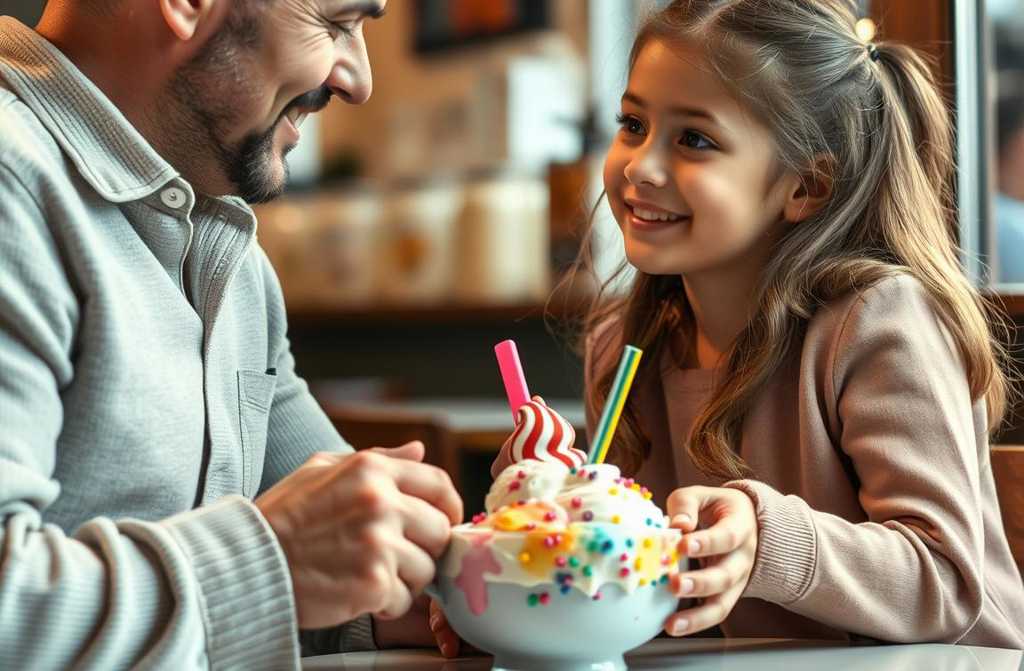 Потом она осознаёт, что то, к чему готовится папа, важнее даже самого вкусного мороженого, и, почти ловко, втыкает ложку в стол, сползает со стула, протирает губы тыльной стороной ладони, сопит носом и, глядя прямо в папу, произносит: