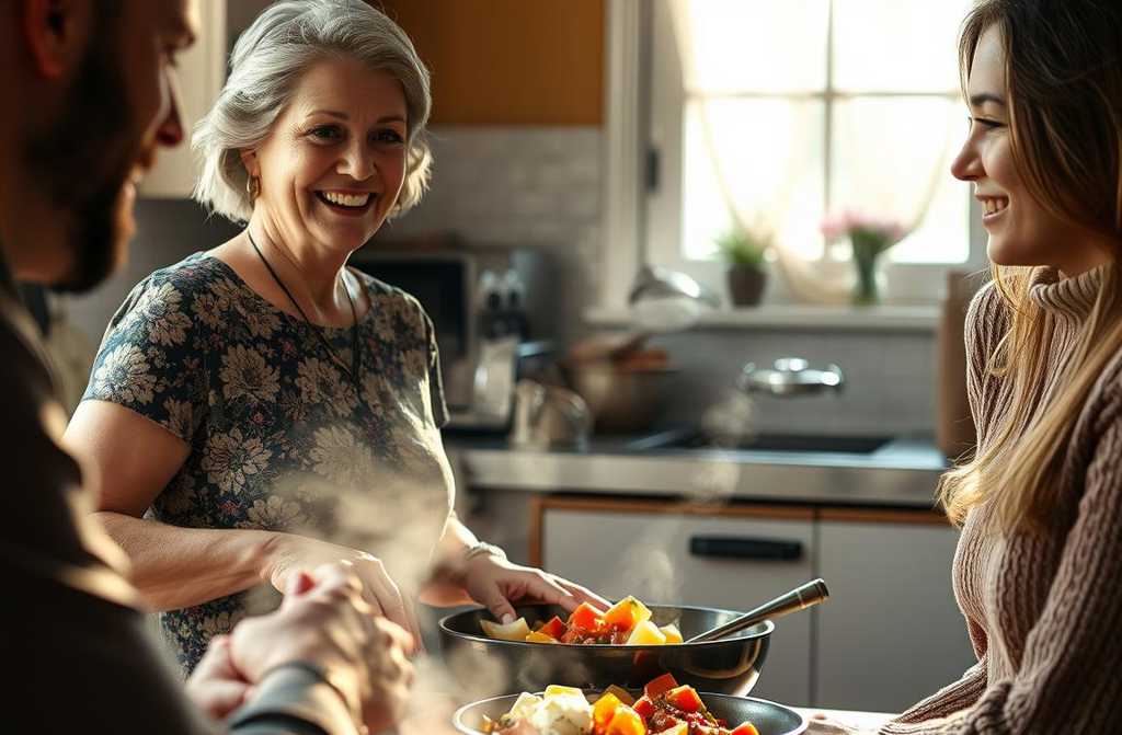 My mind raced. In my day, a man never set foot at the stove. George never peeled potatoes; he left that to me, and I wore that as a badge of honour. Now here was my son, chopping carrots and simmering sauce, and my daughterinlaw, confident and independent.
