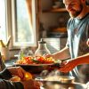 Morning came and Poppy was bustling in the kitchen, tossing salads, heating the oven, ordering a cake. Stan was chopping veg and setting the table.
