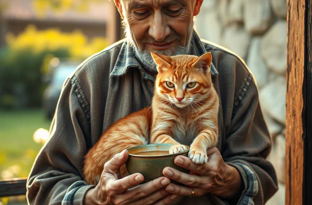 That evening, after Sam had returned to the city, Peter placed a bowl of leftover soup by the veranda and walked away. The cat approached cautiously, began to eat greedily, and finished in a rush.
