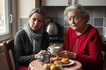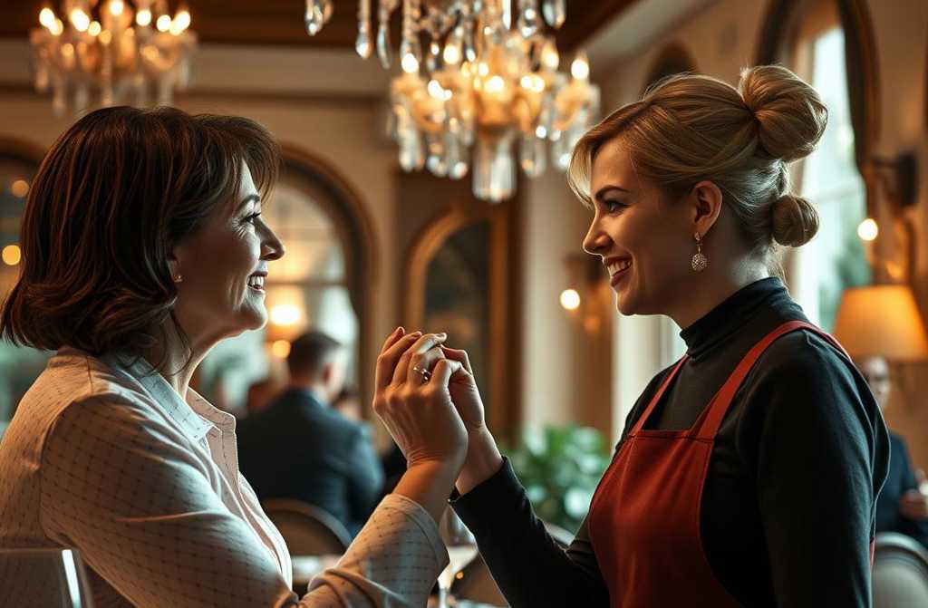 Ирина выглядела постарше, её дорогой костюм сменился скромной униформой официантки, уверенность исчезла.