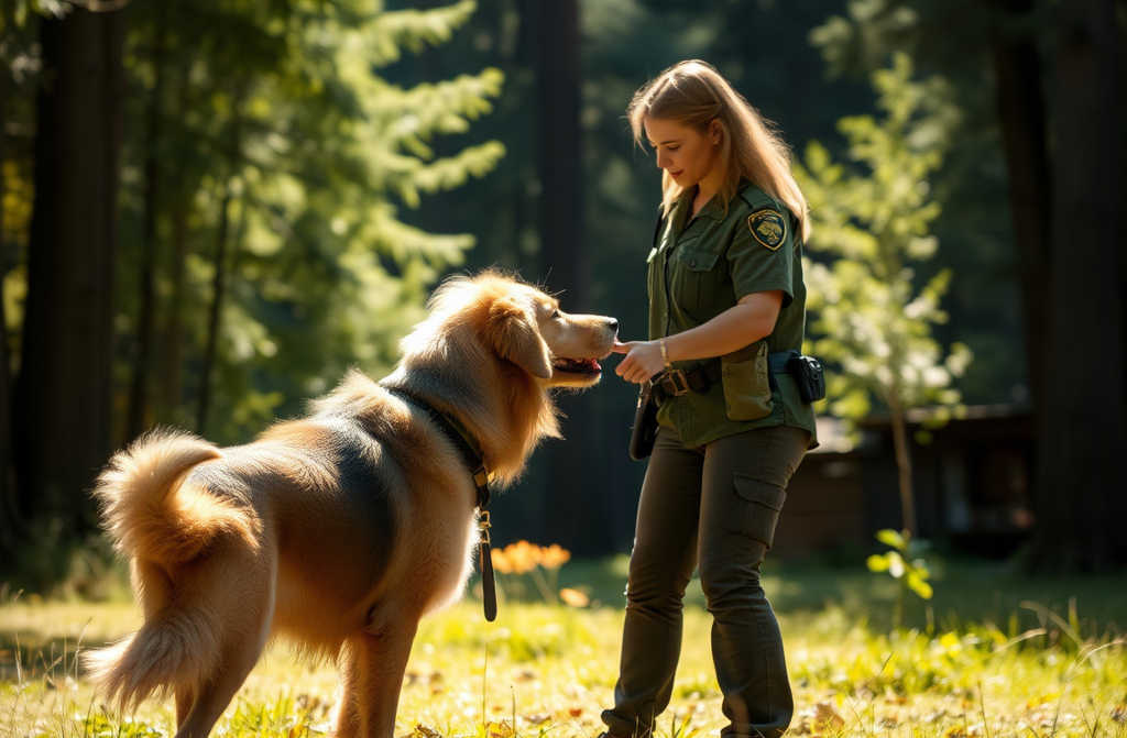 From behind a stand of trees came a sharp bark, and a massive, shaggy dog clearly once a pet burst onto the clearing. He froze when he saw us, then leapt forward, tail whipping frantically.