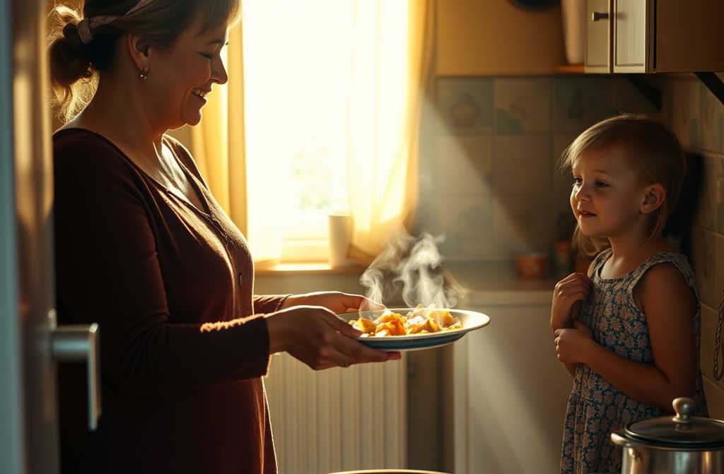 I followed, dropped the bags on the table loaf of bread, a bottle of milk, some oats, a few apples, even a few biscuits. Tommy stared at everything, eyes widening.