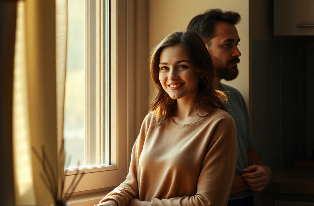 Harry steps into the kitchen in his snug joggers and a crumpled tee, radiating that laidback weekend vibe. He reaches for the tap, fills his glass, barely noticing his wife. Emma sits at the small table by the window, sipping her morning coffee. Sunlight darts across the tablecloth in playful patterns, but her eyes are fixed inward.