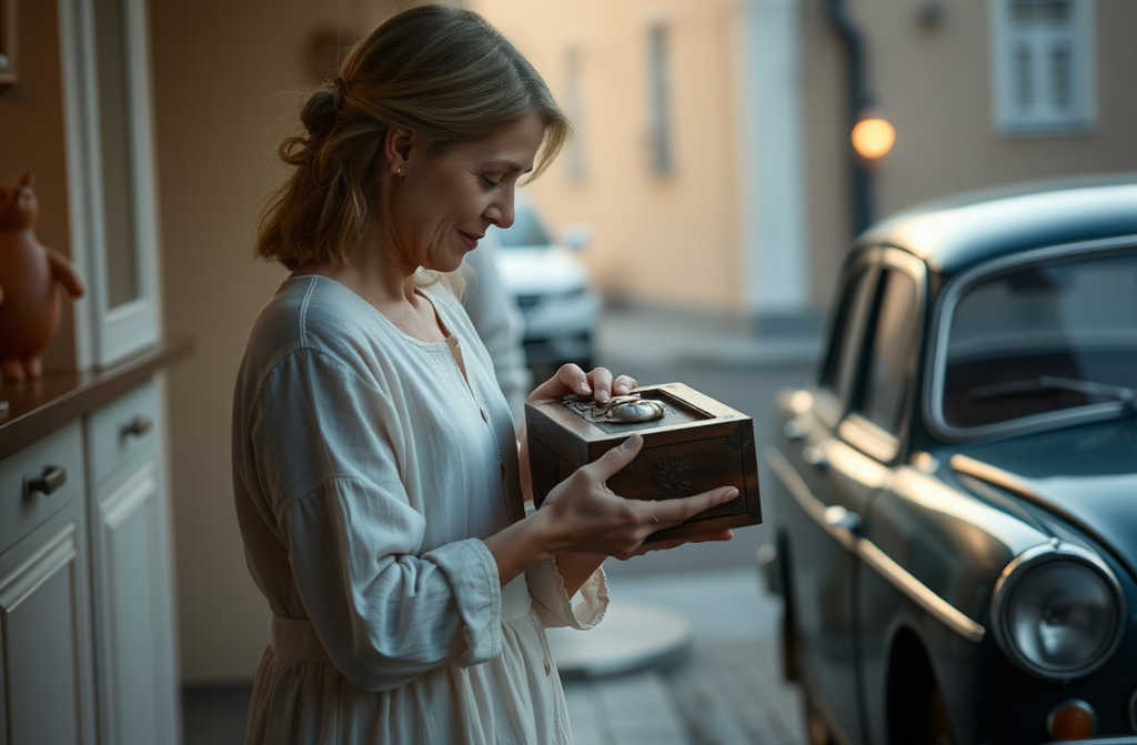 She opens the envelope. Documents tumble out deeds to a house her grandfather built himself without a single nail, tucked away in the countryside, and a registration for an old Vauxhall Viva that sits in her fathers garage as a relic. A letter, written in cramped, looping script, reads:
