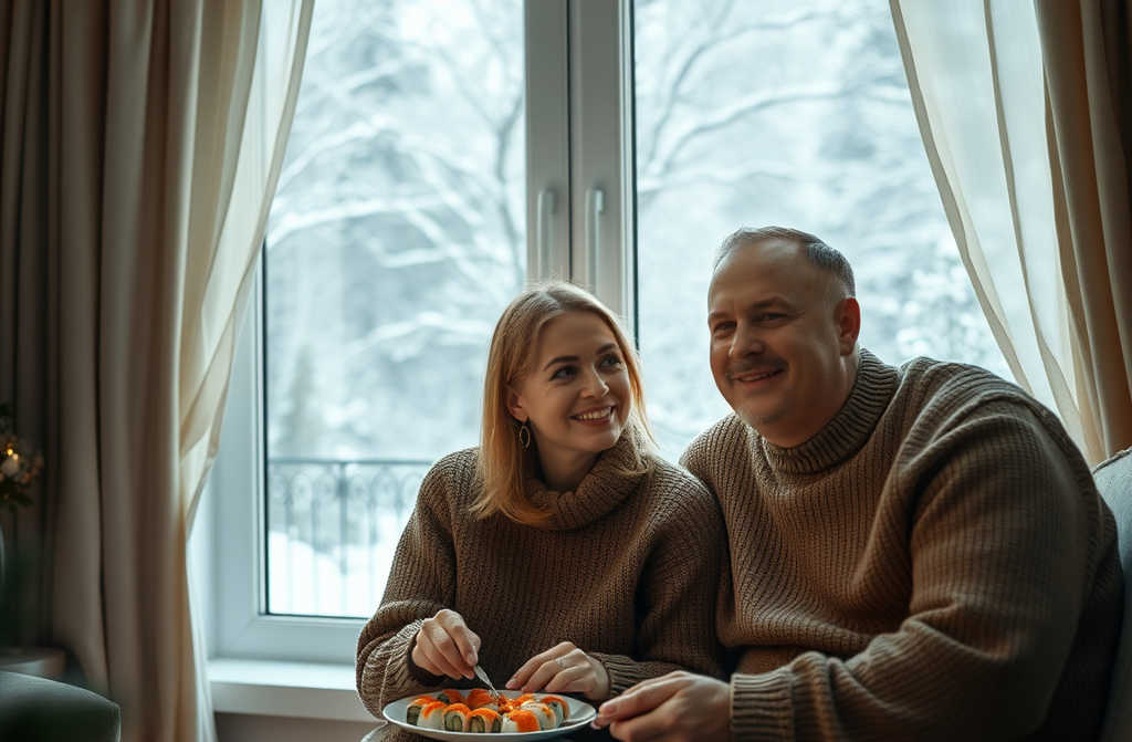 On 31December, as the clock struck eleven, we curled up on the sofa. Sushi lay on the coffee table, champagne fizzed in crystal flutes, and the telly was playing an old favourite, *Home Alone*.