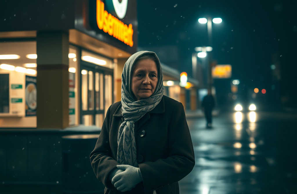 Throughout the afternoon I kept glancing at the thermometer outside; the chill deepened. By five in the evening I ladled some soup into a jar and headed back to the supermarket for more provisions. Passing the young woman, I placed a jar of food beside her, slipped a few pennies into her pocket, gave her a cheeky wink, and hurried into the warmth of the sales floor.