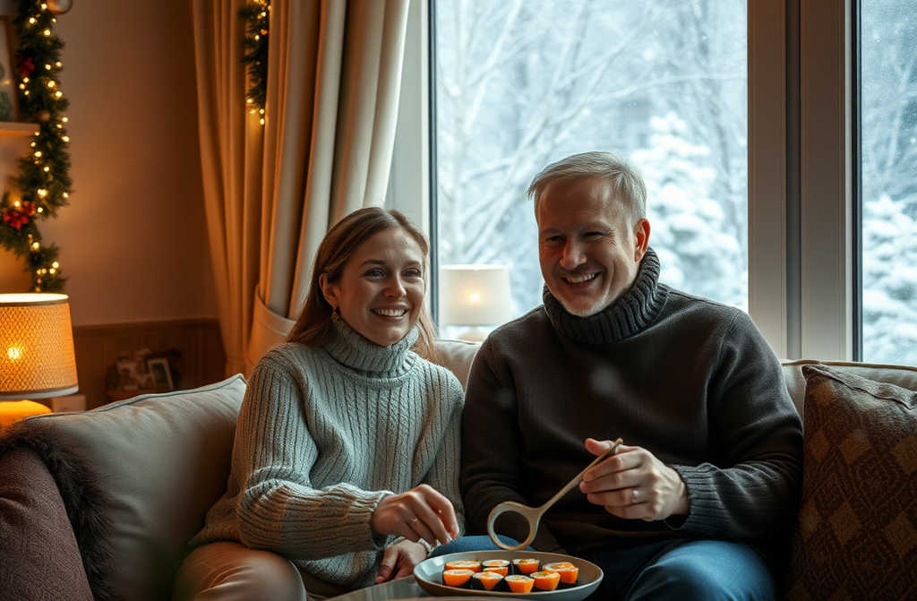 On 31December, as the clock read eleven, they curled up on the sofa. Sushi lay on the coffee table, champagne flutes glittered, and a classic Home Alone flick played on the telly.