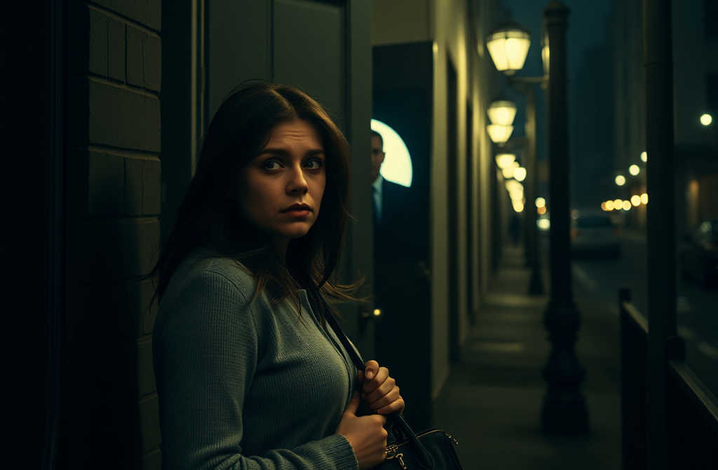 She walked aimlessly down the street, eventually reaching a bus stop and sitting on a bench. An elderly woman with grocery bags perched nearby noticed her pallor.