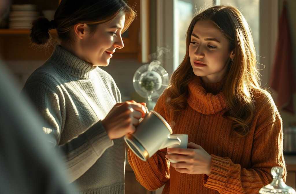 Злата налила горячий чай. Тёплый пар поднялся над чашками и будто отметил границу новой сцены. «Мы здесь, потому что выбрали тебя осознанно», начала она, стараясь говорить ровно. «Ошибаемся все, но убегать не выход».