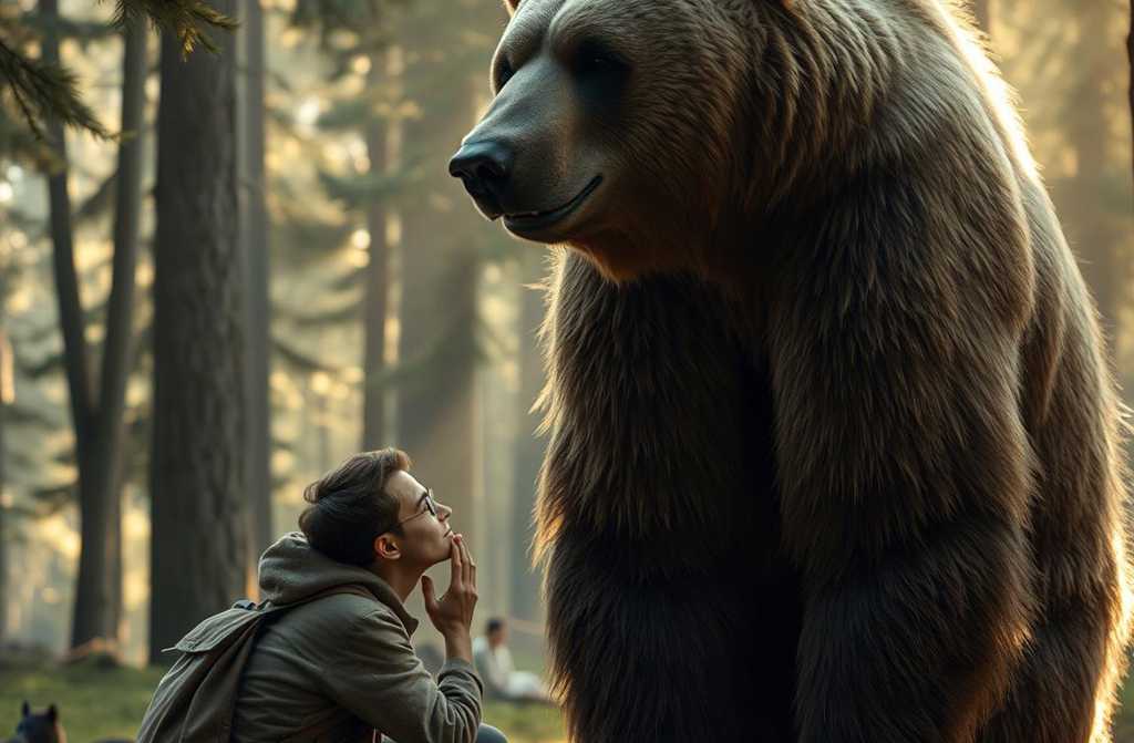 The bear was left alone. He lifted his massive head, glanced updirectly at me. His gaze was heavy, not angry. We stared at each other for a few seconds, then the bear gave a low grunt, turned, and slipped back into the forest, melting among the trees.