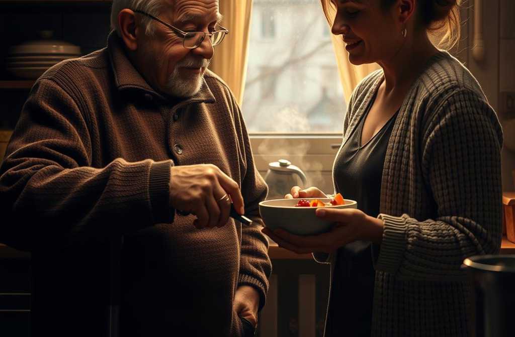 Leaning on his walking stick, William stepped toward the car with his measured, village pace. The city flat greeted him with the aroma of a proper beef and barley soupthe very broth he cherished. The kitchen table was laid out with love: sliced bacon, a bowl of sour cream, and golden rolls brushed with garlic butter.