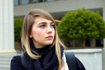 Из дверей университета с громким смехом вывалилась ватага студентов. Девушка с тёмными волосами резко